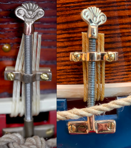 From museum-quality copies of historic instruments, hand-forged components, and hand-planed wood, to nailed seams, hot hide glue (HHG), and oil paints/shellac/linseed oil finish, you'll find it here. If historical accuracy is the goal, we have the infrastructure to bring it to life. Many, if not most Civil War snare drums (including several in our collection) lacked a snare strainer, and instead wedged gut between the hoop and the drumhead. We can replicate this, or use our castings from original strainers.
