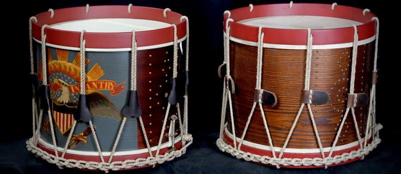 These drums are designed with the look and feel of period-correct instruments but offer an unseen higher build quality than most original instruments: a refined bearing edge, stronger adhesives, and more durable paints as options to meet your preferences as the performer. We can use the original recipes, but it comes at a cost of durability and sound quality. Civil War contract drums were generally most importantly signaling devices, not instruments, and were often cobbled together by the lowest bidder.