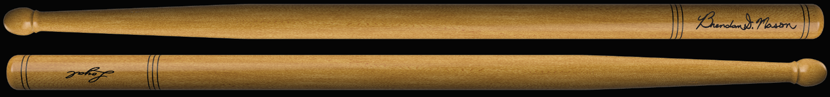 The Loyal Drums Brendan D. Mason signature rudimental drumstick was designed as a collaboration between Dave Loyal and Brendan Mason to update a traditional style drumstick to the current state of technique and style used by modern rudimental drummers. American Hickory, Pitch and weight matched, .737” diameter, and a straight taper neck make this a great all around stick for rudimental drumming, with an edge towards wrist and finger technique.