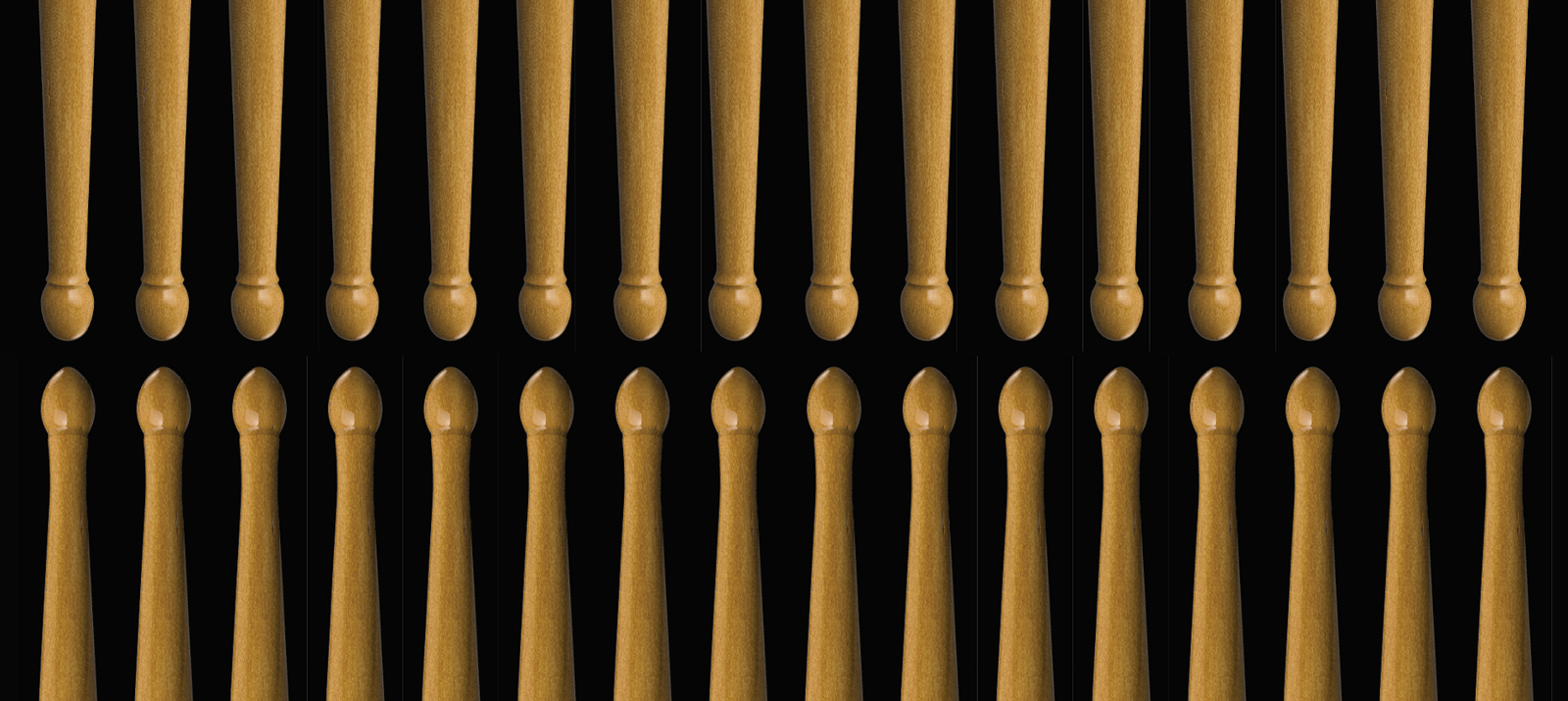 The Loyal Drums M1 rudimental drumstick was designed, exhaustively iterated, and produced at our shop in Fredericksburg Virginia, USA. American hickory, pitch and weight matched, .737” diameter, and a compound taper neck make this a great all around stick for rudimental drumming, and excels for players of the Moeller style.