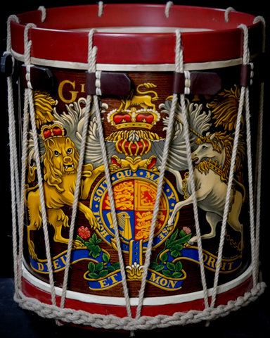 Calfskin heads are suggested for historical accuracy, but since we are a custom shop, we can adapt the drum to fit your needs. Synthetic stained Quantum* drum heads are a much better replication of the look, sound, and feel of calf than Fiberskyn. Although not period-correct, Quantum heads are commonly used in schools and educational programs, and we recommend calfskin drums to serious living historians and progressive reenactors. Muffles and dampeners can be provided, but are not standard, nor historically accurate. Goat skin is not recommended due to its limited longevity.